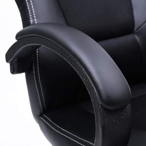 El cuero sintético dota a la silla de un aspecto elegante, es muy fácil de limpiar y casa bien con prácticamente cualquier estilo decorativo. Sin embargo, no es la opción más cómoda en verano, especialmente si te gusta estar sin camiseta o llevas ropa que permita que tu piel entre en contacto con la silla.